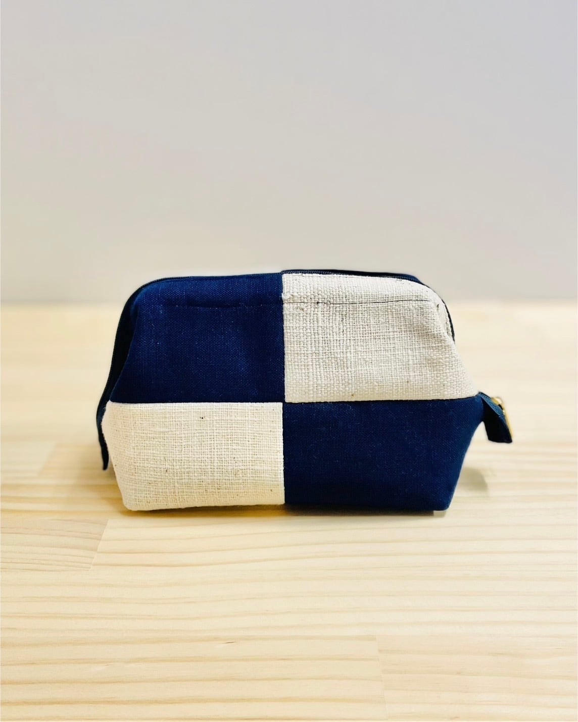 藍色と手織木綿の白色のコントラストが美しいです。山型のフォルもかわいらしい印象です。
