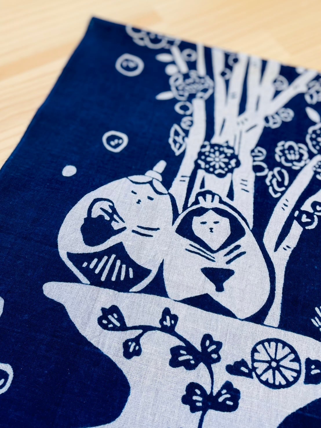 おひなさまをモチーフにした当店オリジナルの藍型染手ぬぐいです。