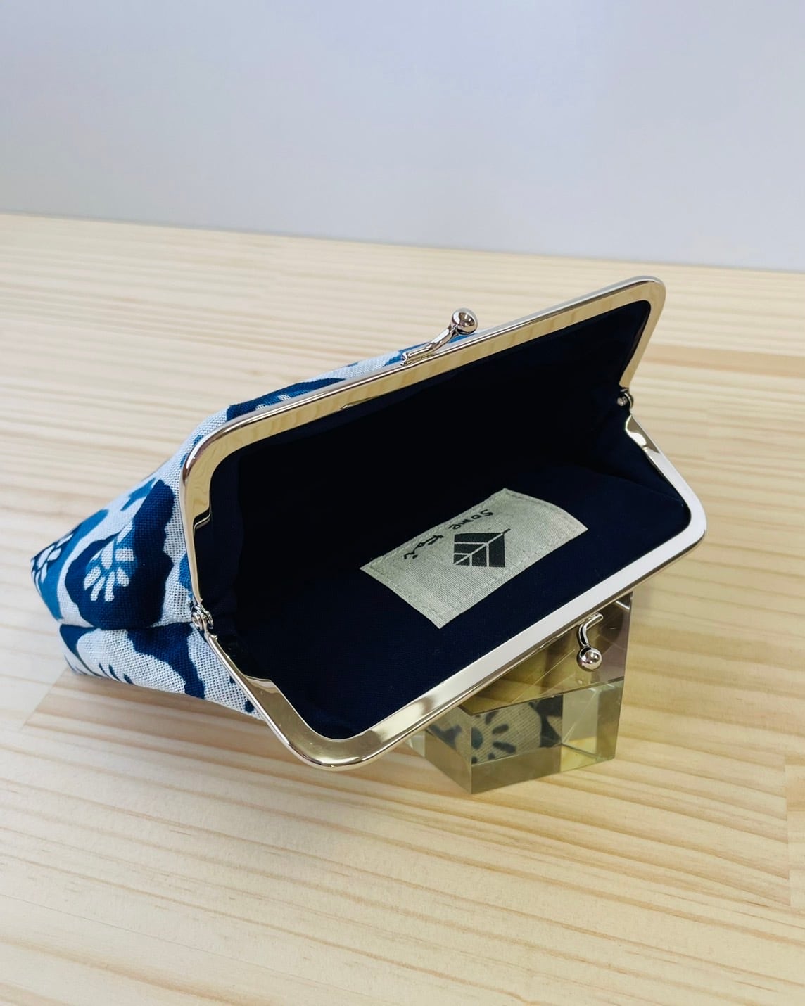 紺屋そめかひオリジナル藍型染のがま口ポーチです。